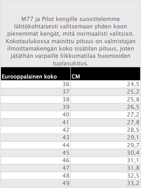 Ja mikä tärkeintä, ne ovat kestävät. Pidä saappaat vain hyvin rasvattuina. Kuten täysnahkaisten saappaidenkin kohdalla, niiden käyttöön ottaminen voi viedä aikaa, mutta jos ei ole jo käytössä, ei niin hyvät kuin olla ja voi. Nämä saappaat ovat unisex-mallit ja suunniteltu sekä miehille että naisille. Koot ovat suuria, ja ne on tarkoitettu käytettäväksi lämpösukkien tai jopa tuplasukkien kanssa. Jos aiot käyttää näitä pakkasella, suosittelemme M77-mallille valmistettuja sisäsukkia. Yhteenvetona voidaan todeta, että ne ovat luultavasti yhdet maailman parhaista hinta-laatusuhteeltaan olevista saappaista , mutta ymmärrämme, etteivät sovi kaikille. Joten jos välität merkistä, tässä linkit Dr. Martensin ja Timberlandin verkkokauppoihin.